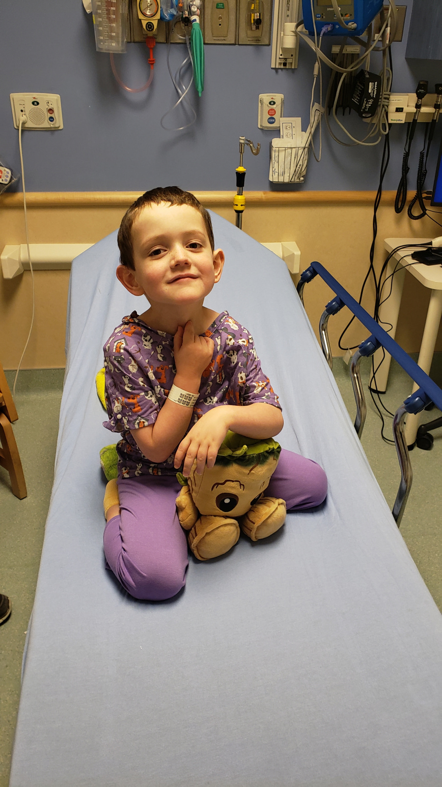 Eli underwent an extremely complex 11-hour surgery where doctors removed all they could of the tumor. Following surgery, Eli couldn’t lift his head or move the left side of his body. It was almost a week before he was able to walk again. Pathology reports shortly after indicated the tumor was a juvenile pilocytic astrocytoma (JPA). We were relieved to hear from doctors that Eli’s outlook was positive: he had a “good” type of brain cancer and there was a 90% chance the tumor would not come back.